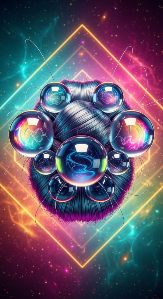 For a true glitchy glam hair moment, try this playful take. It’s futuristic and fun, playing with shape and space. The “bubbles” add unexpected texture and make a simple bun look like a piece of art.