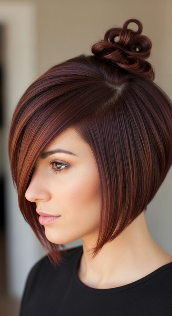 Got a lob or longer bob? You can still rock a high bun! This style uses the bun as a focal point while your shorter lengths create a chic, asymmetrical frame. It’s a genius way to style shorter hair for a formal event.