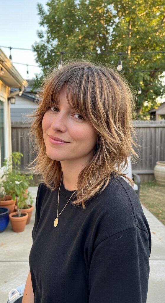 Bringing 70s cool to a manageable length, the lob shag is all about liberation. It’s heavily layered, with wispy bangs and a ton of movement. This cut is designed to look messy and amazing.