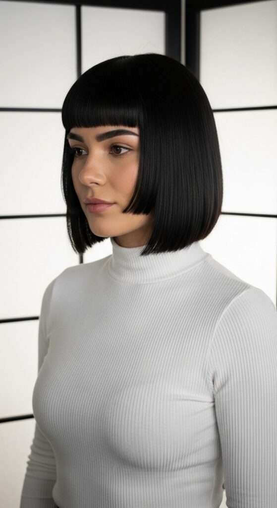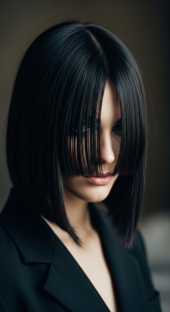 It’s sleek, mysterious, and incredibly chic. The cut is often blunt or with very minimal layering to keep the lines clean. It demands confidence and a good straight iron.
