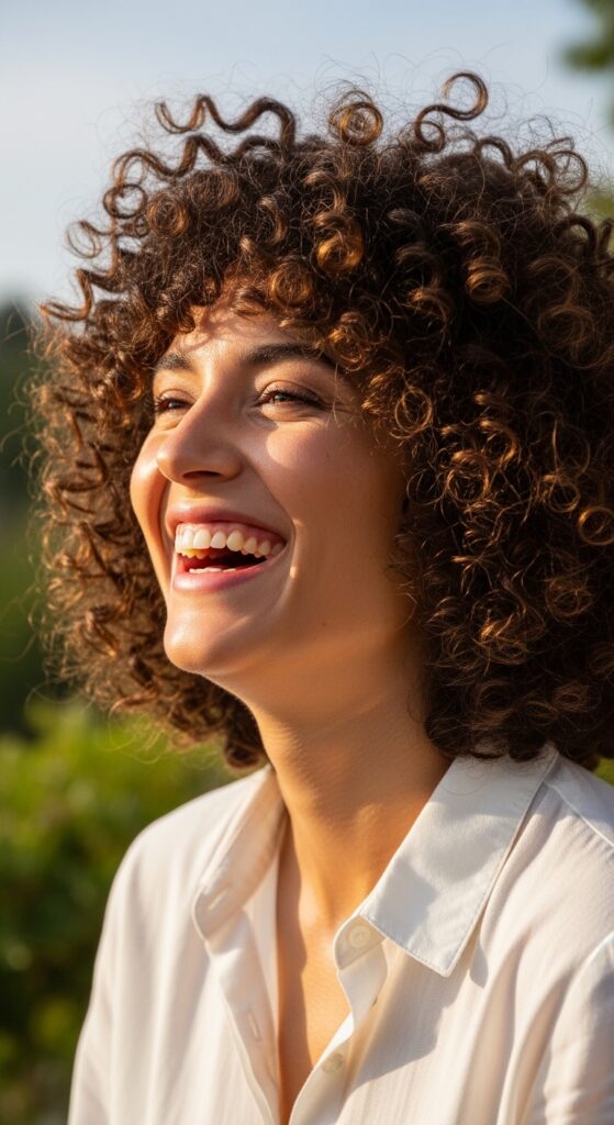 Find a stylist who specializes in curly cuts. They’ll cut it dry, curl by curl, to ensure the shape is perfect. This style is all about volume, health, and using the right curl-defining creams.