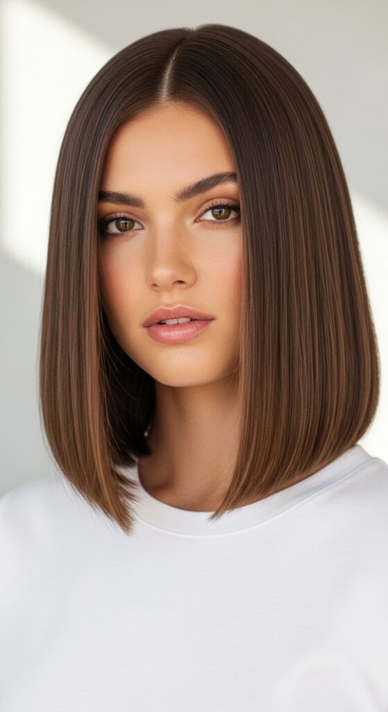 This is where it all begins. The classic blunt lob is all about a single, clean line with no layers. It’s incredibly chic and makes your hair look impossibly thick and healthy.