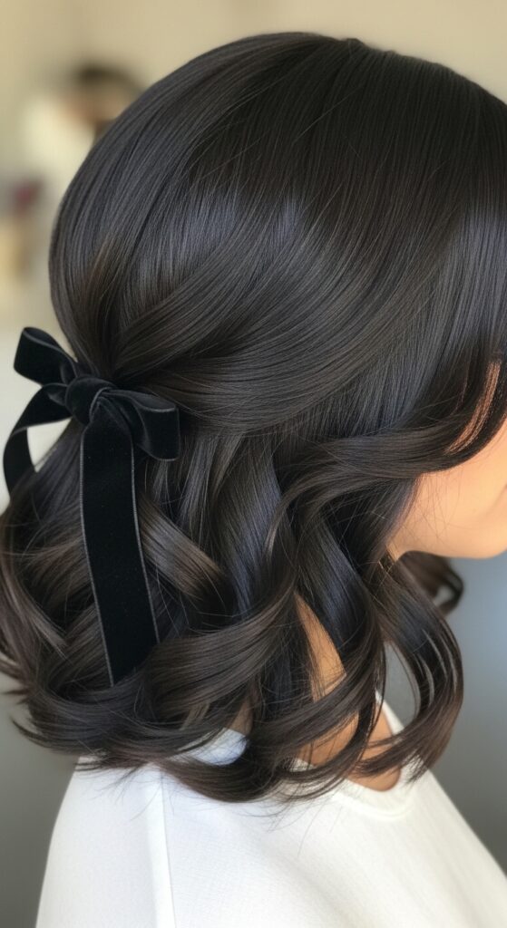 This is for the modern vampire. The romantic goth hairstyles trend mixes dark, moody color with soft, romantic texture. Imagine a deep black or burgundy lob with soft waves, maybe even some delicate braids or ribbon accessories.