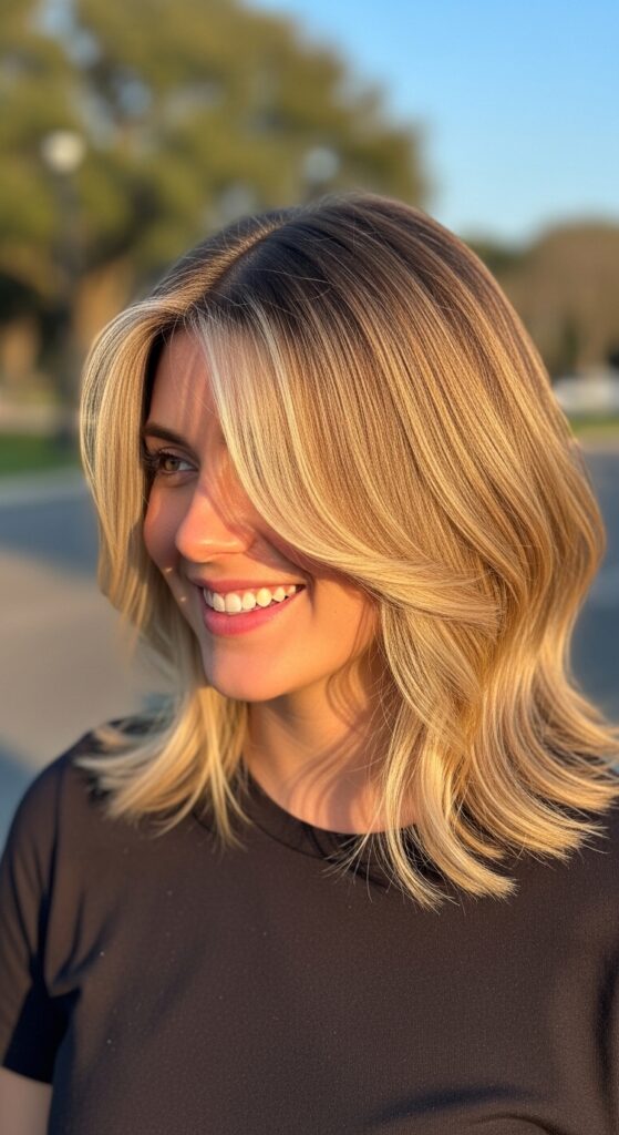 It’s low-maintenance and grows out beautifully. The mix of tones in the bronde family adds warmth and dimension, making your haircut look expensive and lived-in. A true crowd-pleaser.