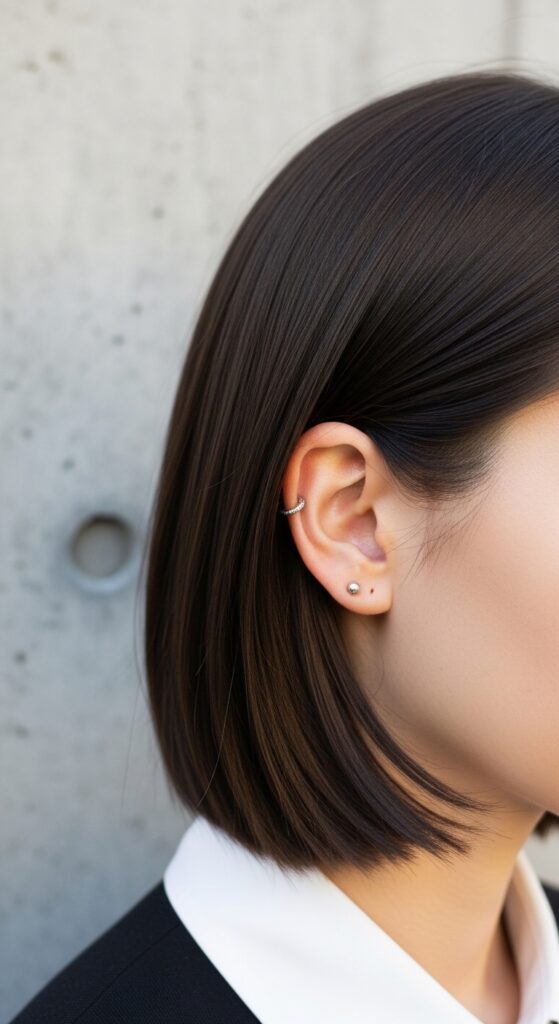 Sometimes simple is powerful. A blunt lob with zero layers is a sharp, modern statement. It focuses all the attention on the health of your hair and the precision of the cut. It swings beautifully when you walk.
