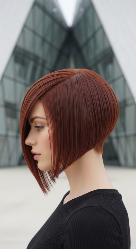 This cut works great on straight or slightly wavy hair. You can wear it sleek or add texture. It’s a fantastic way to experiment with asymmetry without going super short. A little off-center part enhances the effect perfectly.
