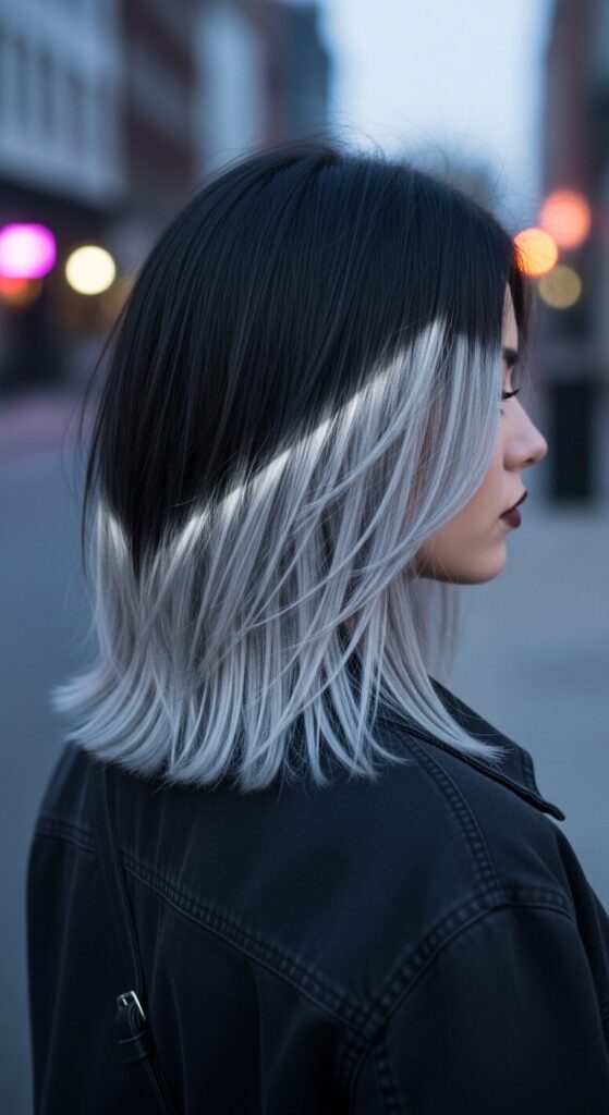 For a seriously fashion-forward take, try a two-tone lob. Think a deep color on top (like black or chocolate) and a contrasting shade on the bottom layers (like platinum or pastel). It’s a dramatic color-blocking effect.