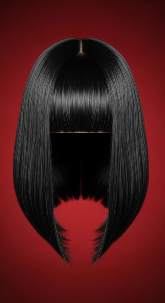 The “hime cut” is a traditional Japanese style, and its modern lob interpretation is stunning. It features straight, blunt-cut hair with two distinct, long front strands that frame the face, often cut at jaw level.