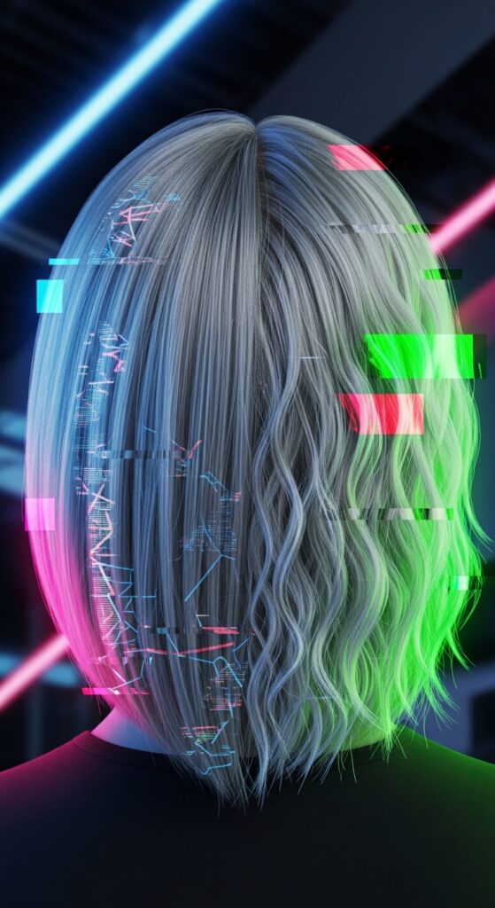 “Glitchy glam hair” is all about intentional imperfection. For a lob, this means combining different textures—sleek sections next to crimped or braided pieces, or wet-look finishes with dry ends.
