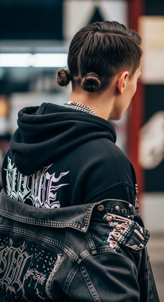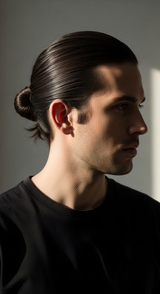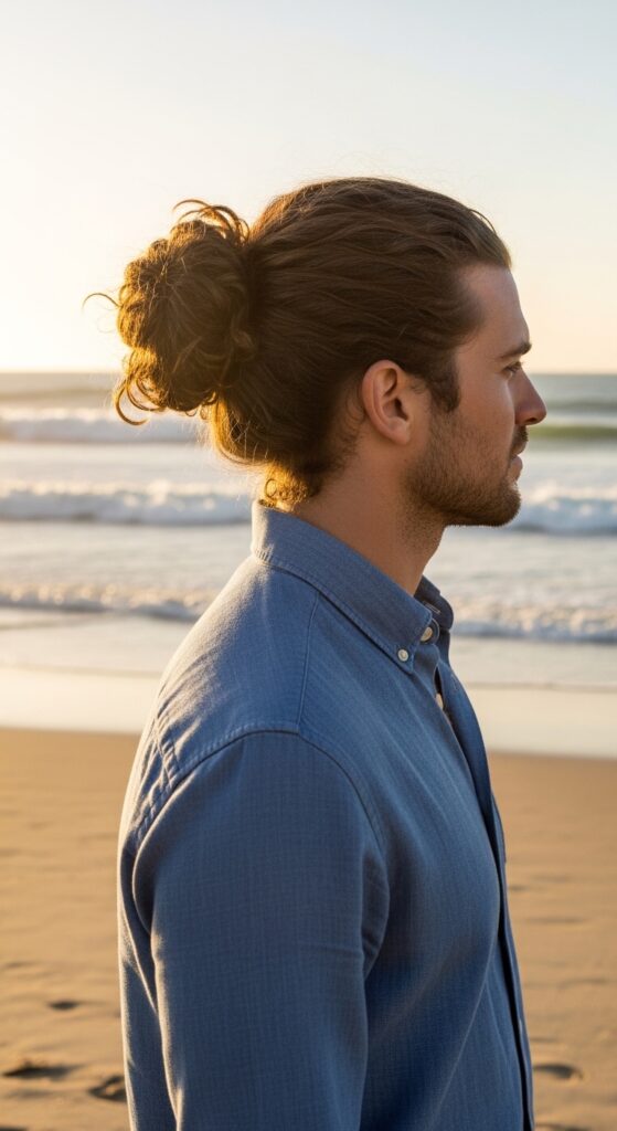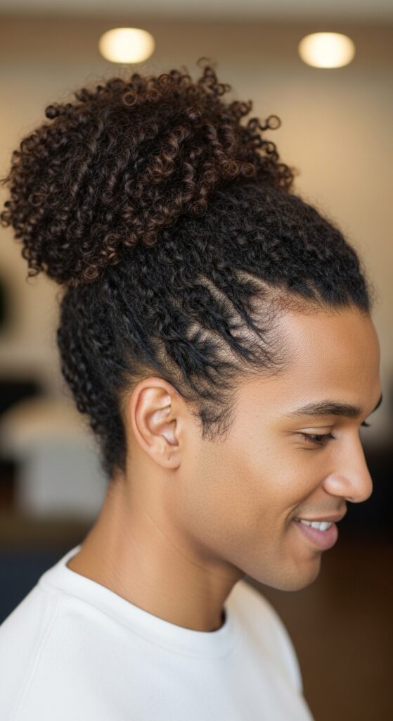 This is for my wavy-haired guys. Don’t fight your texture—embrace it. A bun made from your natural waves adds incredible volume and visual interest.