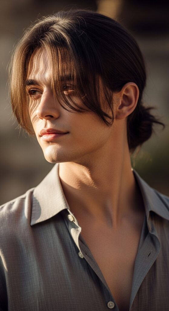 This style has a hint of that vampire haircut drama—think Interview with the Vampire—but grounded and wearable. It’s romantic in a masculine way.