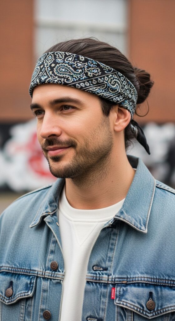 This is practical for workouts, hot days, or just adding color and pattern to a simple outfit. It frames the face and draws the eye to your bun.