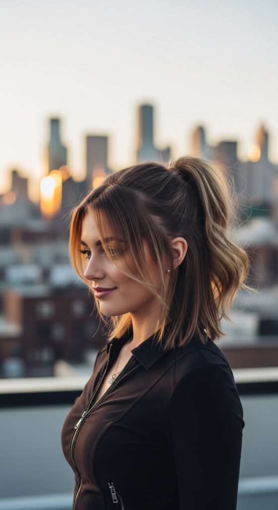 Embrace it. Secure your hair as high as you can, letting those shorter pieces create a chic, geometric frame. It’s a modern, editorial take on the messy pony that really highlights a great cut.