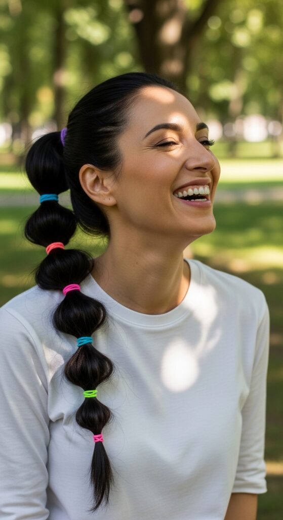 After each elastic is secure, gently pull and puff out the section of hair between the ties to create the “bubbles.” Adjust until you get a fun, voluminous shape. It’s an instant conversation starter and adds amazing volume.