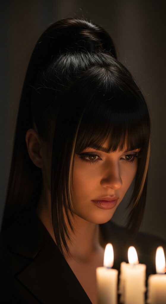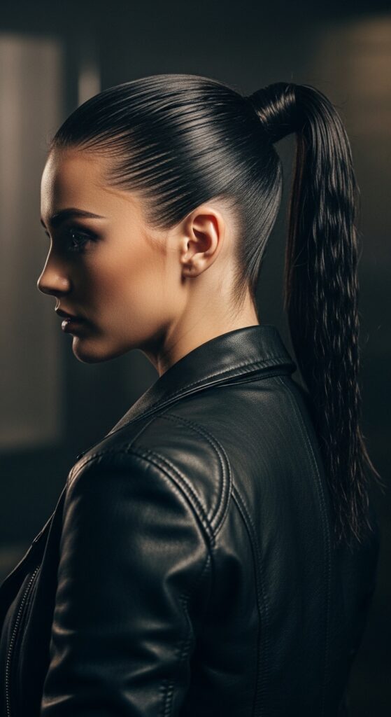 Pull it back into a high, tight pony. You can leave some pieces out to mold around your face. It’s edgy, modern, and perfect for a night out. It even taps into that romantic goth hairstyles aesthetic when paired with darker makeup.