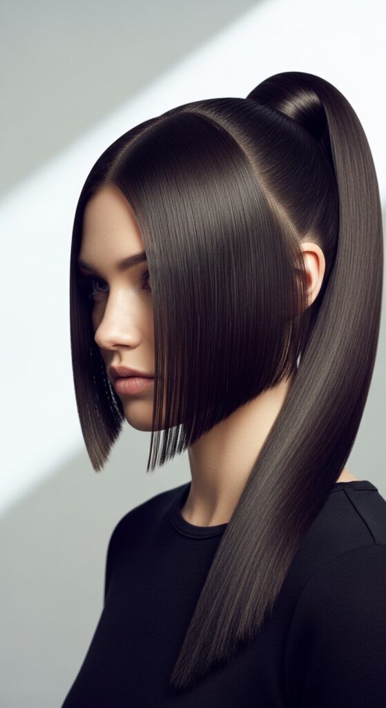 Secure your ponytail as high as it can go. Use the product to tame any baby hairs. The contrast between the slick front and a slightly textured or voluminous tail is pure modern glam. It feels very 2026 hairstyles in its bold simplicity.