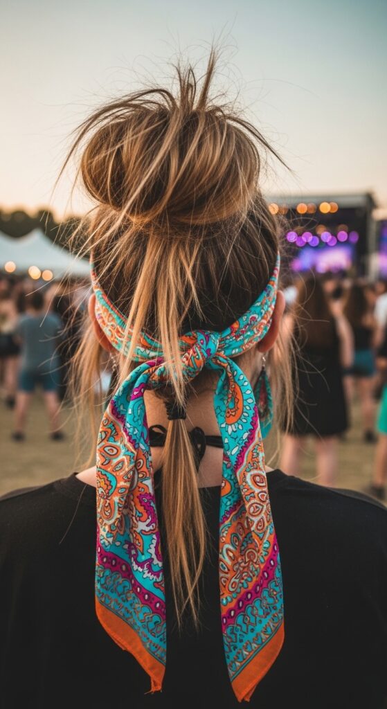 Alternatively, tie it around the base of the pony itself. It’s a fantastic way to add color, hide a bad hair day, or just channel some vintage cool. The messier the pony, the better it looks.