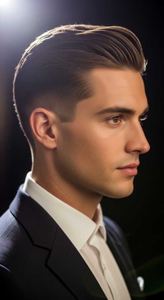 We’re taking the undercut and making it less aggressive. The top is still long enough to comb back, but it’s not greasy. Use a lightweight gel or cream, comb it back while damp, and let it dry naturally. The low fade underneath keeps it fresh without the “I just stepped out of a 2014 music video” vibe. Great for date nights.