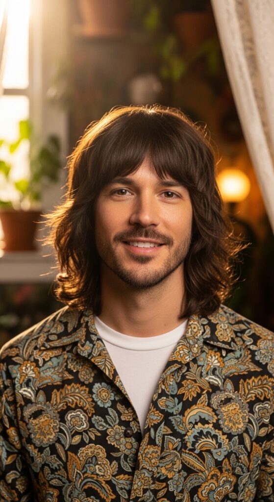Curtain bangs are not just for women. A long layered shag with face-framing pieces at the front is soft, relaxed, and very 2026. It works best with wavy or slightly curly hair. Ask for layers that start at the cheekbone. Style with a round brush and blow-dry the bangs away from your face. It’s the haircut of a guy who reads poetry and plays guitar.