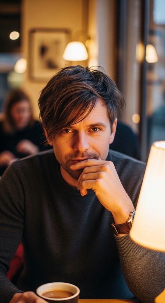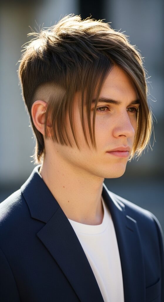 This is for the guy who wants to look like he doesn’t care—but secretly does. Mid-length hair (around ear-length) with a messy side sweep and a little wave. No product needed, just a good cut and a quick ruffle with your fingers. It’s the ultimate “I just woke up like this” haircut for 2026. Works with most hair types.