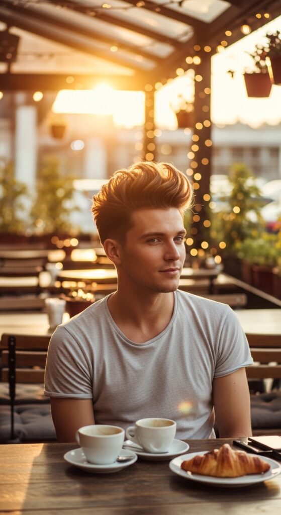 The pompadour gets a grown-up update. Instead of high drama, we’re going for a lower, more natural sweep. Think Elvis’s cousin who works in tech. Blow-dry it back with a round brush, then finish with a matte pomade. It holds all day but doesn’t feel helmet-y. Perfect for round faces that need a little height without the over-the-top vibe.
