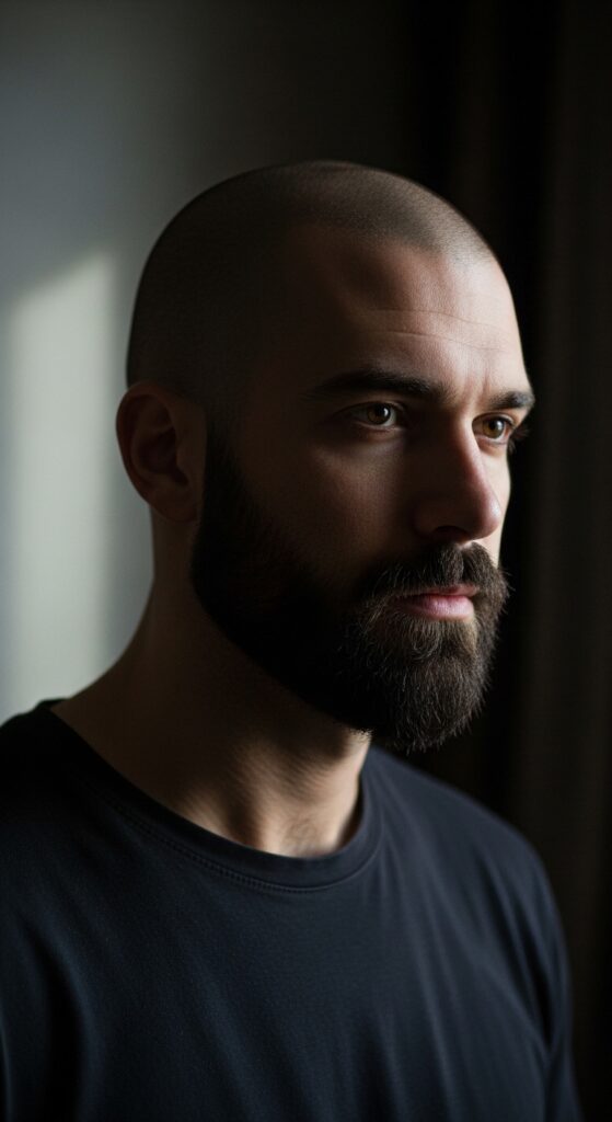 Sometimes the best hairstyle is no hair at all. A clean-shaved head with a faded beard is powerful, practical, and timeless. The beard should taper from the sideburns to the chin for a clean transition. It’s low-maintenance, high-impact. Plus, it saves you at least 10 minutes in the morning. Own it with confidence.