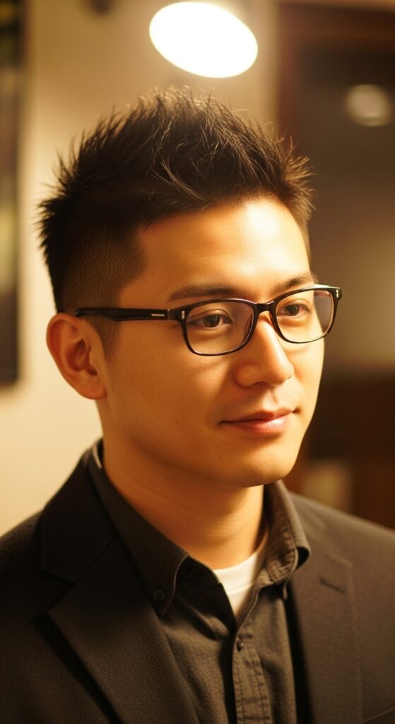 Spikes don’t have to be 2002 punk rock. A soft spiky crop is short on top with tiny, natural spikes that move. Use a light hold paste and push hair upward while it’s damp. The spikes should look like they just happened—not like they were glued. It’s playful without trying too hard. Great for weekend brunch or casual Fridays.