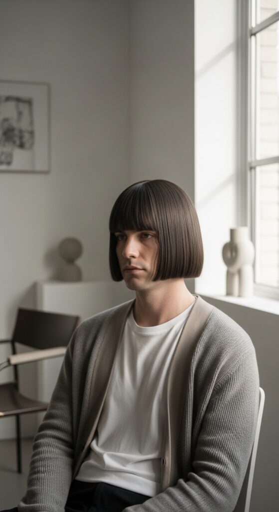 Bobs aren’t just for women. The quiet luxury bob is a chin-length cut with razor-sharp edges and zero bulk. It’s minimal, intentional, and instantly makes you look like you have good taste. Pair it with a clean-shaven face and a simple crewneck. This one takes confidence, but the payoff is huge.