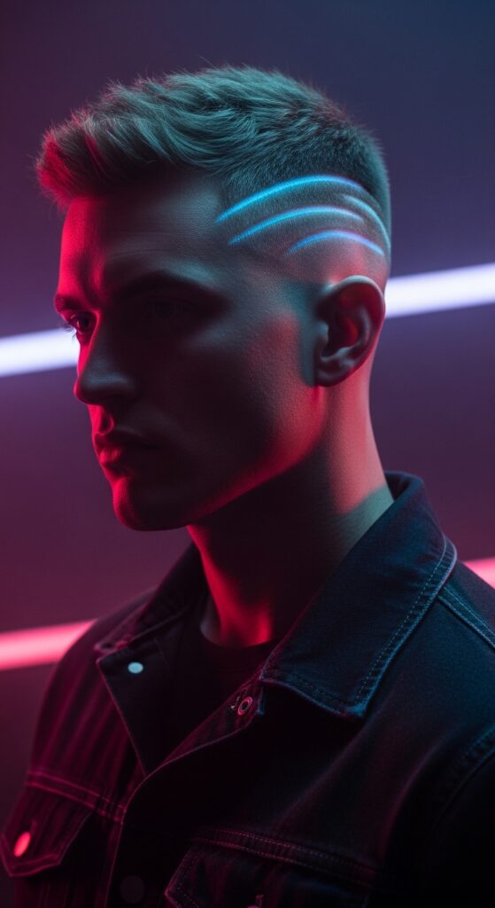 If you like a little edge, glitchy glam is for you. It’s a classic textured crop on top with one or two thin, geometric shaved lines on the side. It’s not a full design—just a subtle detail that catches the light. Great for nights out or when you want your hair to do the talking. Keep the top messy for that perfect contrast.
