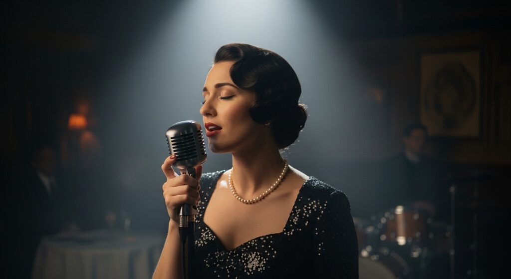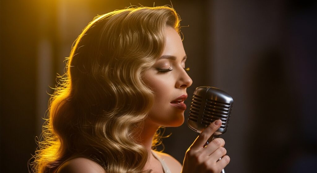 Channel old-school glamour with big, bouncy waves. This hairstyle adds major volume and a touch of vintage drama, perfect for vocalists and performers with a classic or jazz-inspired sound. Use large-barrel curls and backcomb gently at the roots for lasting lift.