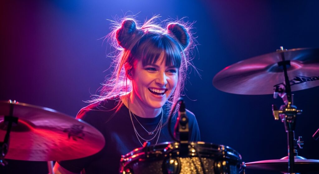 The minimalist’s secure choice. A high top knot is clean, keeps hair completely away, and highlights your neck and profile. It’s a favorite for drummers, dancers in bands, and anyone who needs absolute practicality without sacrificing style.