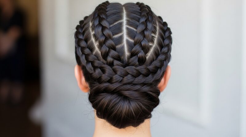 7. Hidden Braid Crown: French braid each side of your head starting at the temples, moving backward. Meet the braids at the back and tie them together, then tuck the ends up into a bun.