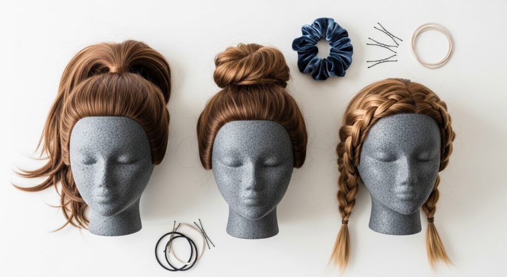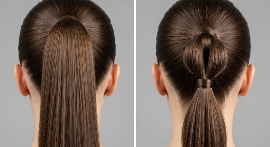Secure Strategically: Use small, clear elastics that match your hair color for an invisible hold. For thicker hair, double up on elastics.