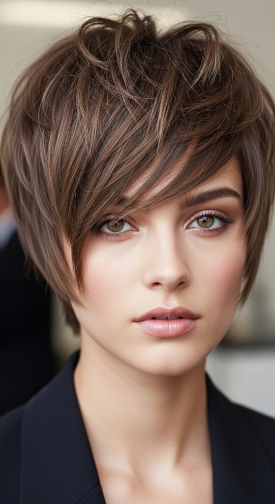 It’s incredibly versatile. You can wear it sleek and piecey for a modern look, or lean into the natural wave for that “I just woke up cool” texture. This cut works with straight, wavy, and lightly curly hair.