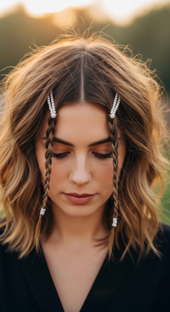 Your shag is the perfect base for fun styling. Add a few small face-framing braids, or clip in some pearl barrettes or sleek metal clips. The texture holds accessories perfectly.