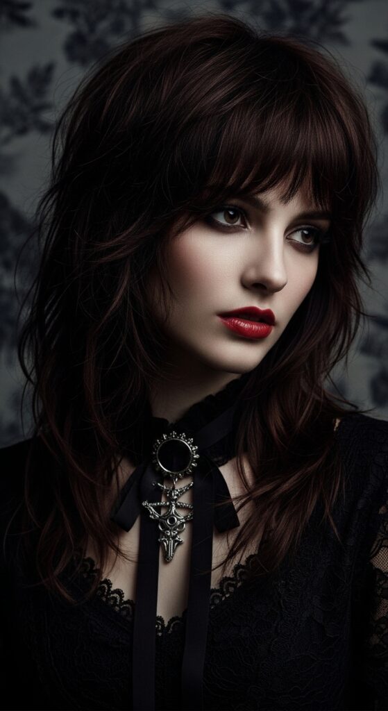 This look is for the vampire haircut enthusiast. It pairs perfectly with lace, velvet, and a bold lip. The key is the texture—it should look artfully messy, not unkempt.