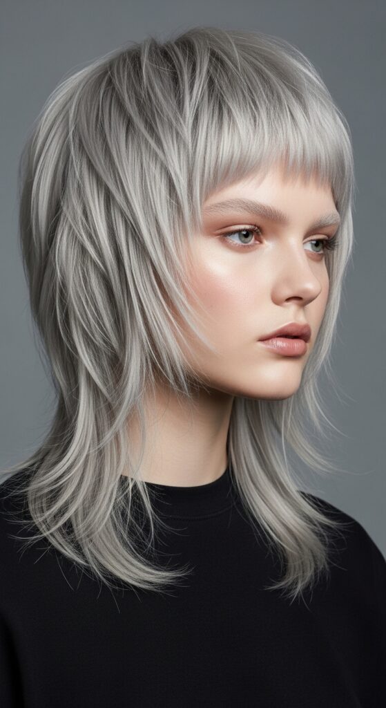 A silver or icy platinum shade takes the shag into futuristic territory. The cool tones accentuate every single layer and chop, creating a stunning, high-fashion effect.