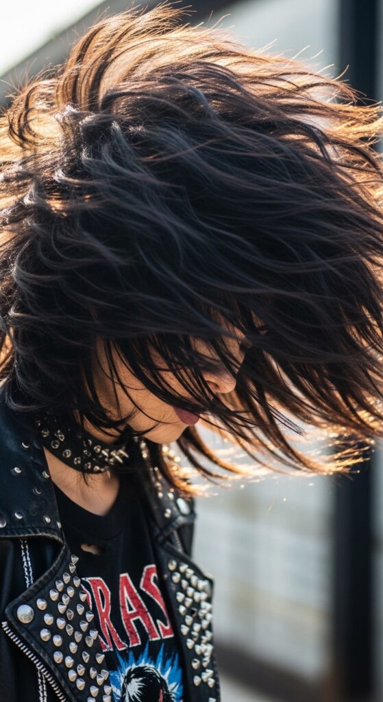 This is for anyone who loves anime-inspired fashion or just wants a truly unique silhouette. It’s a dramatic, beautiful way to wear a shag and fits right in with glitchy glam hair trends.