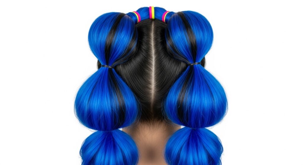 For a more effortlessly cool and voluminous vibe, texture is your best friend. Before creating your ponytails, spritz dry shampoo or texturizing spray throughout your lengths. Lightly tease the hair at the crown and at the base of each planned ponytail section. When you secure the stacked ponytails, leave them a little looser and gently pull out a few face-framing pieces. This method creates a soft, lived-in look with maximum body and a rock-and-roll edge.