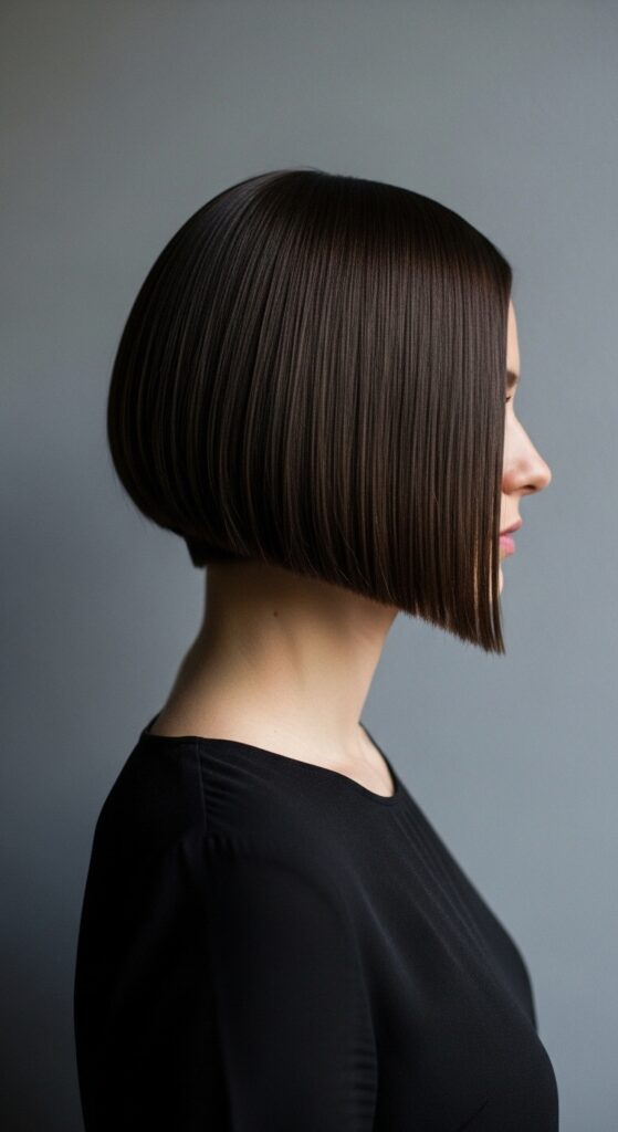 This works especially well for straight or slightly wavy hair. The weight of the cut can also help smooth flyaways. For a modern twist, ask for a subtle undercut to remove bulk without changing the exterior line.
