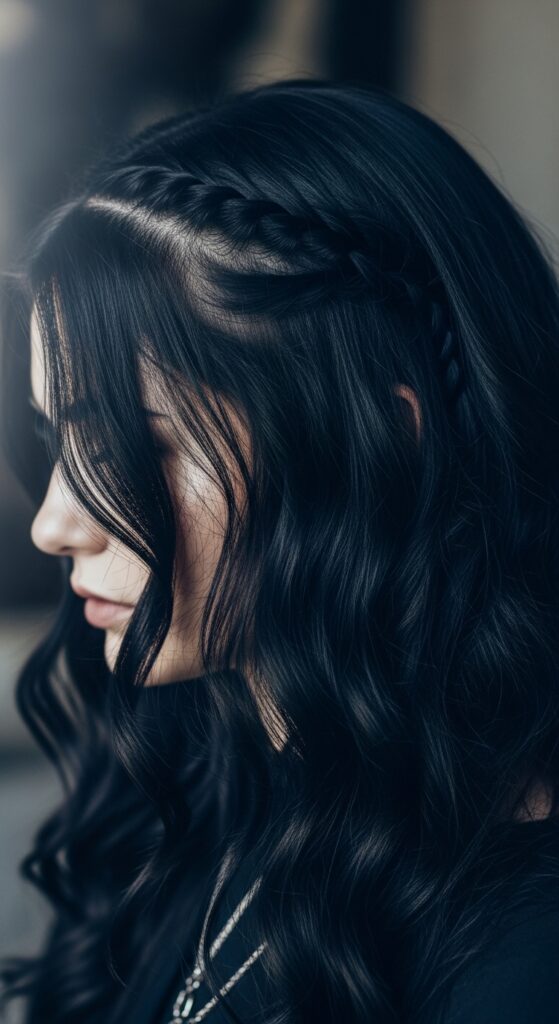 Think this aesthetic requires thick hair? Think again. Romantic goth hairstyles are about softness and drape. For thin hair, focus on details like delicate braids incorporated into loose waves or a low, twisted bun with face-framing tendrils.