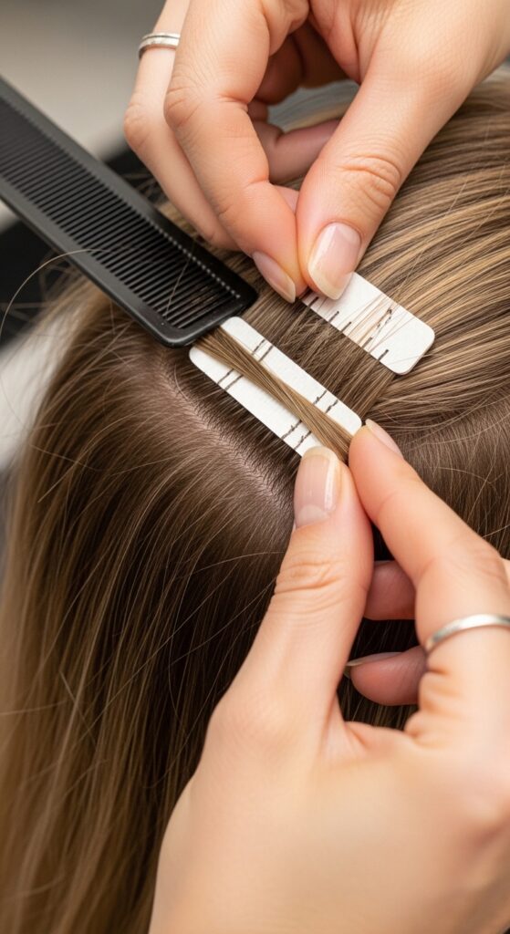 If you invest in permanent extensions, choose wisely. Tape-in or keratin tip extensions are often best for thin hair because they lie flat against the scalp. They should be applied by a certified expert who can place them to support your natural hair.
