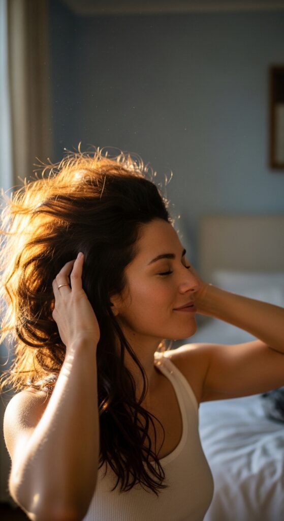 This can change everything. A deep side part instantly creates more volume at the crown because you’re lifting hair from one side to the other. It’s a 10-second fix for flat roots.