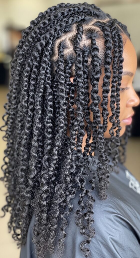 Similar to a twist-out but with a different result. Braid-outs create a looser, wave-like pattern with tons of volume. They’re perfect when you want a change from your usual curl definition.