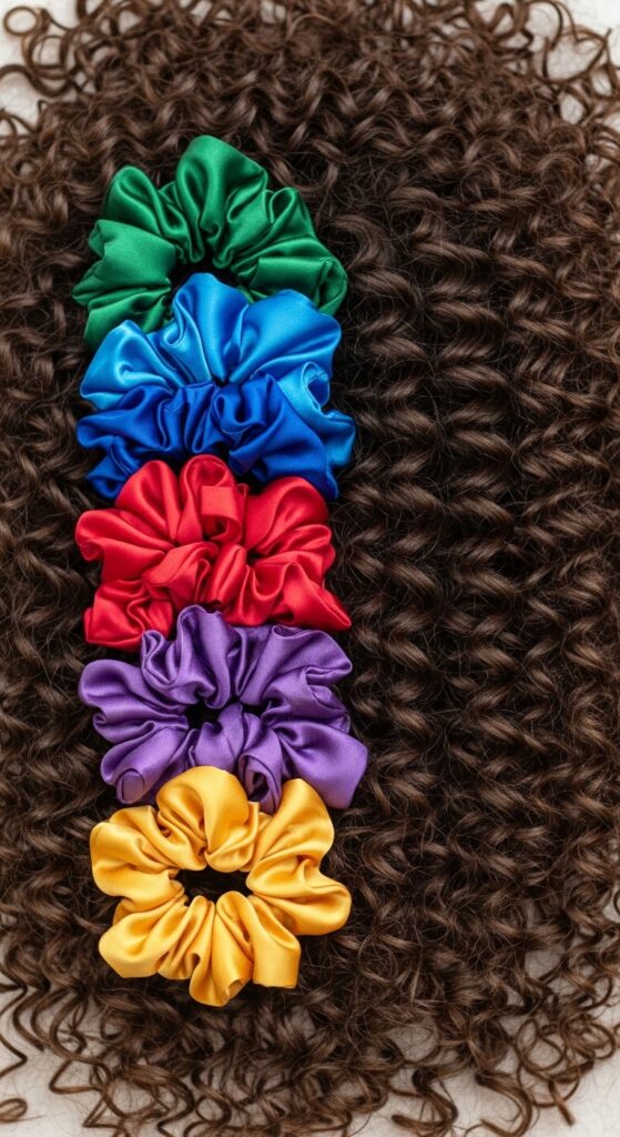 This is a tiny change with a huge impact. Regular hair ties cause breakage and dent your curls. Silk scrunchies glide on, hold securely without pulling, and leave no crease.