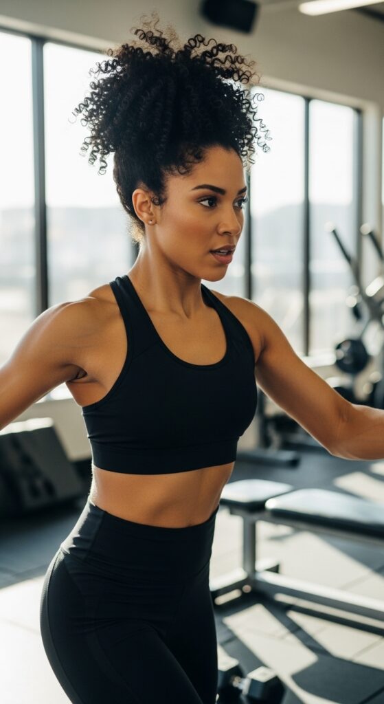 Working out with curls doesn’t have to mean a sweaty reset. The key is prevention. Put your hair in a very loose, high ponytail or pineapple with a silk scrunchie before you start.