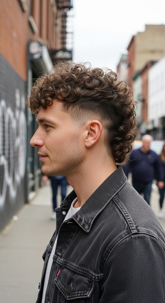 The curly mullet is playful, edgy, and full of personality. It’s short and layered at the front and top, with longer, textured curls in the back.