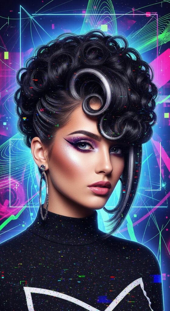 Glitchy glam hair is all about intentional imperfection. Think a perfectly defined curl pattern with one or two sections deliberately picked out, flattened, or styled straight.
