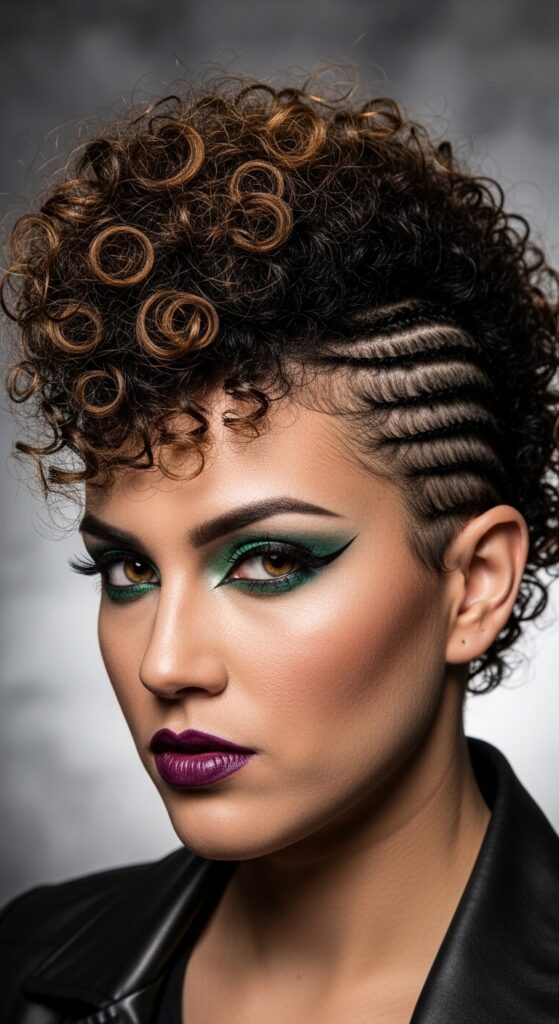 It’s a playful, modern trend that breaks the “rules” and feels very fashion-forward. It works amazingly on shorter curly cuts and bobs.