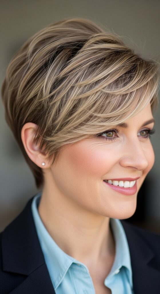 Short hair deserves fun too! Adding wispy bangs to a pixie cut creates softness and draws attention to your eyes. It’s a playful, feminine take on a classic short cut.